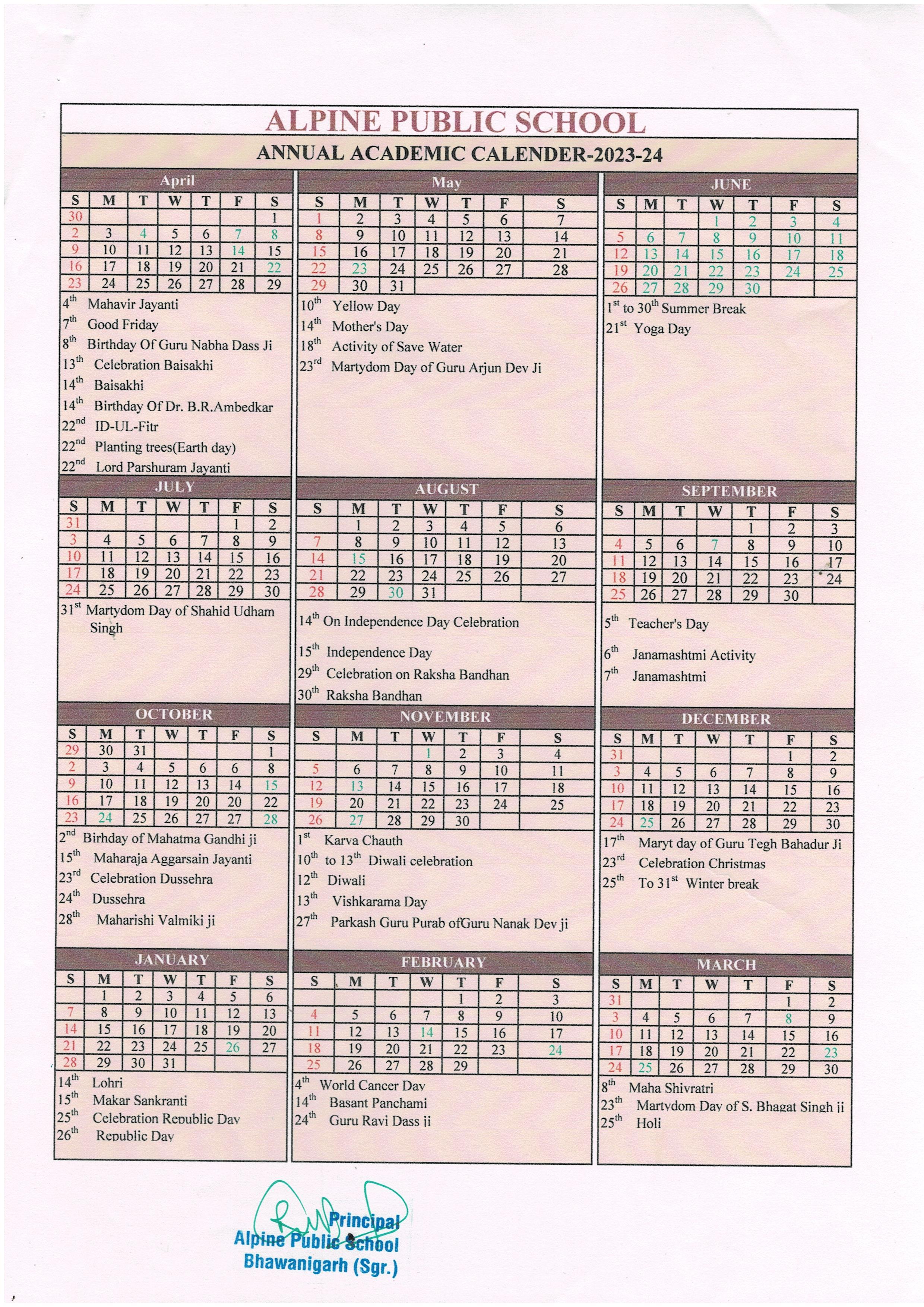 Annual Academic Calendar